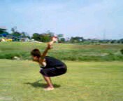この技を繰り返し練習し、次第に身体の回転を速くしていって