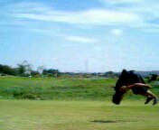 | Dとうっ! | K地面を見ながら、 着地に入ります。 |