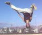 前方に倒立して、ブリッジし、身体を反らせて起き上がる技です。 |