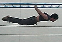 Muscle Upです。懸垂から支持にします。ストリートワークアウトの技です。 |