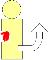 H身体が落ちてくる前に 再び右手を逆手にして、 右下腹部を右肘で ドスッ!と受けます。 (慣れないと痛いです。) |