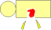 K身体が落ちてくる前に 再び右手を逆手にして、 右下腹部を右肘で ドスッ!と受けます。 |