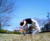 Lブリッジです。管理人は 身体が硬いのであまり きれいなブリッジでは ありません(泣) 出来るだけ手と足の 距離は短くするように しましょう。 |
