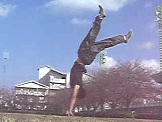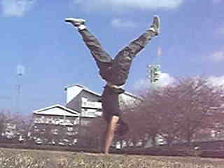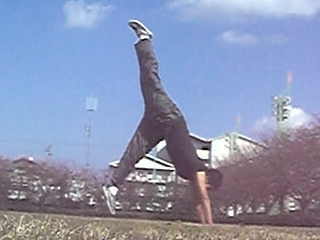 B管理人は左足で 踏み切るタイプの ハンドスプリングです。 踏み切り足の左足を 前に出します。 |