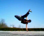 Fこの状態でピタッと止めます。 ちなみに体操では静止技は2秒止める というルールがありますが、 ブレイキンには規定がありません。 最初のうちは膝を曲げてやると やりやすいよ♪ |