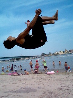 と、いうわけで海パン片手倒立です。