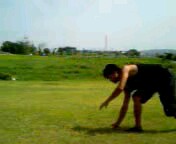 続いて上着飛び越しをしましょう。まず、地面に上着を置きます。
