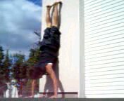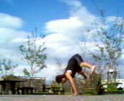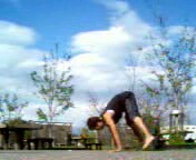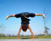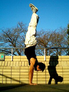 このとき最初から倒立で静止ではなく、ヨロヨロと手で歩いたりまた足をついたり…、を