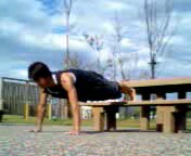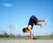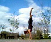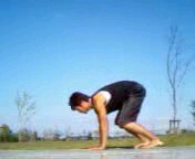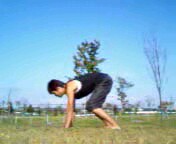 C足を開いてバランスをとる。 指先で体重を支えているような感覚がつかめればもう出来たようなもんです。 |