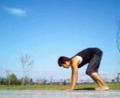 @地面に手をつく。 目線は地面をしっかりと見ましょう。 |
